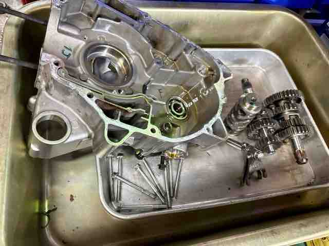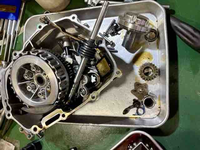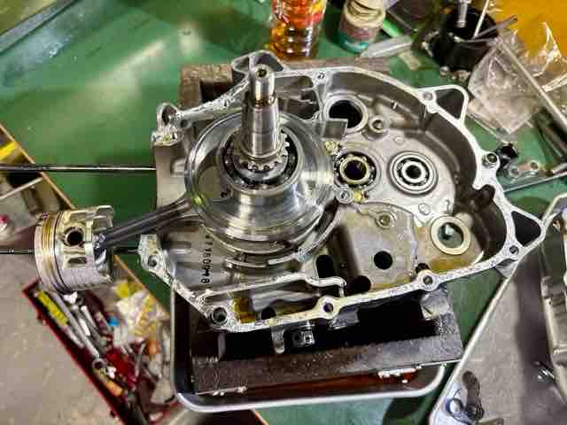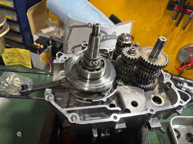 2024年11月02日 モンキー125 JB02エンジンパワーアップ作戦その6 そしてエンジン分解。クランクシャフト、ミッションが現れました。ノーマル4速ミッションを取り外し、チェック。異常ありません。クランクシャフトも点検。こちらも異常なし。タケガワ5速クロスミッションを組み込みます。Nメカ慣れた手順でサクサクと取り付けていきます。ノーマルミッションは外しました。外したパーツです。外した4速ミッションと左クランクケースタケガワ5速ミッション組み込み。 「作業日誌」カテゴリの最新記事 タグ :#モンキー125カスタムブログ